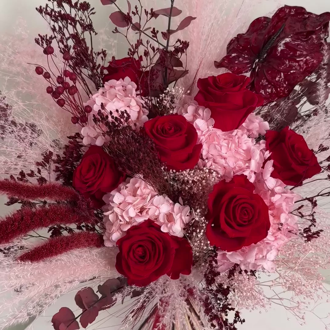 Katrs pušķis veidots no dabiskiem ziediem, kas rūpīgi žāvēti un stabilizēti, saglabājot katra zieda skaistumu gadiem ilgi.